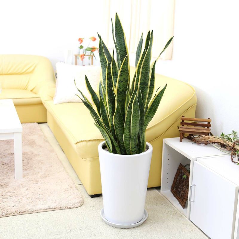 【送料無料】空気を浄化するといわれている大きめサンスベリア 10号 ホワイト陶器鉢 丸形