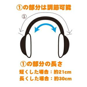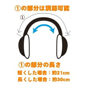 耳あて部分は、ひっぱるだけで調節可能です。短くした場合は、約21cm、長くした場合は、約30cmとなっております。