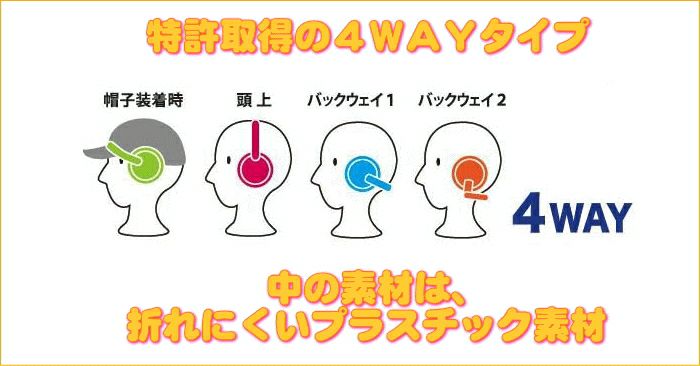 帽子装着時や、頭上から固定、また、後ろからも装着できるようにも考えられています。