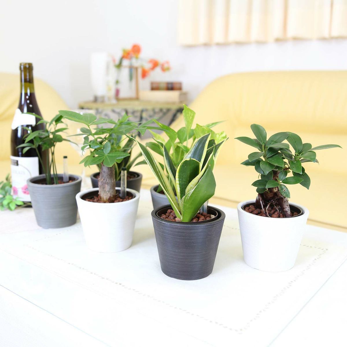 【送料無料】土を使わず清潔感あるスモールサイズ観葉植物 ホワイトプラスチック鉢 丸形+水位計付き 2鉢セット