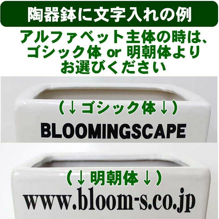 【裏メニュー】スクエア形の陶器鉢に文字入れ「5号・6号・7号・8号・9号・10号対応」(鉢カバーは対応不可)シールタイプ