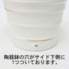 鉢の穴は、底面にはなく、サイド下側部分に1つあいております。 通常通り、別途ご用意いただいた、鉢皿を敷いていただくと室内でもご利用いただけます。