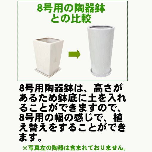 他の画像を見る ホワイト陶器鉢(丸形) 8号用(ロング)+お皿付き(+鉢底石+鉢底ネットサービス) 当店特別価格 ¥ 4,928 税込 在庫切れ サイズ 幅 約25.5cm 奥行き 約25.5cm 高さ約48cm お気に入りに登録する