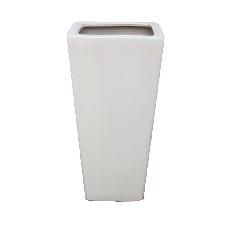 ホワイトスクエア陶器鉢(セミロング)Sサイズ 7号+陶器鉢皿セット (+鉢底石+鉢底ネットサービス)