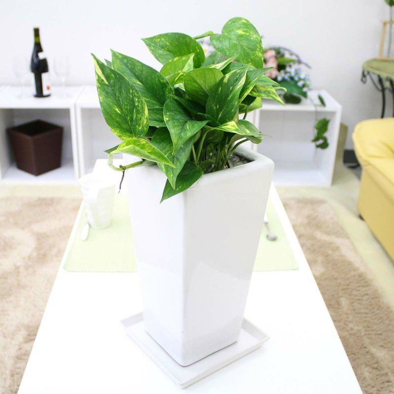 【送料無料】ポトス「垂れタイプ」 6号 ホワイトスクエア陶器鉢(ストレート)