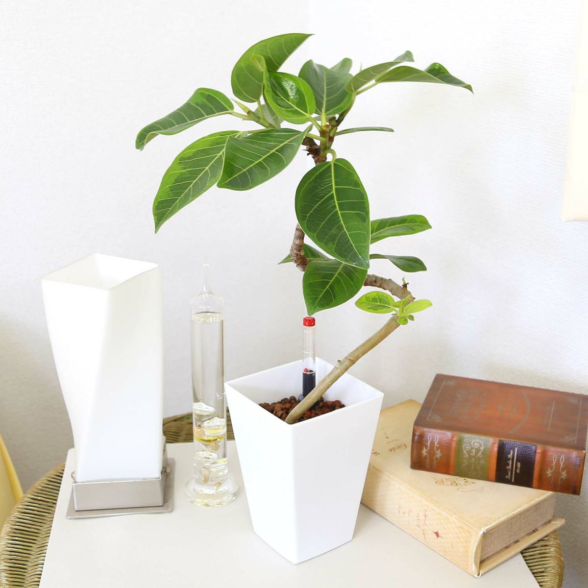 他の画像を見る ブルーミングスケープでしか手に入らない! 【送料無料】土を使わず清潔感もある曲がり仕立てのベンガレンシス・スクエアホワイトプラスチック鉢「ミディアムサイズ」+水位計付き 当店特別価格 ¥ 6,580 税込 在庫切れ サイズ 高さ 約45~60cm お気に入りに登録する