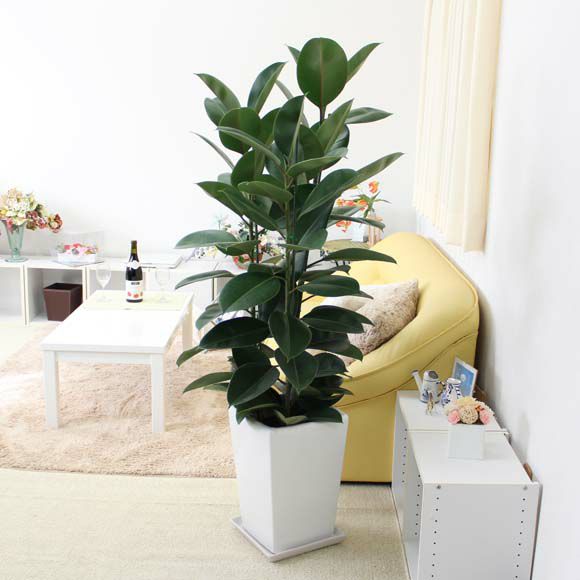 【送料無料】ゴムの木 10号 ホワイトスクエア陶器鉢 ストレート