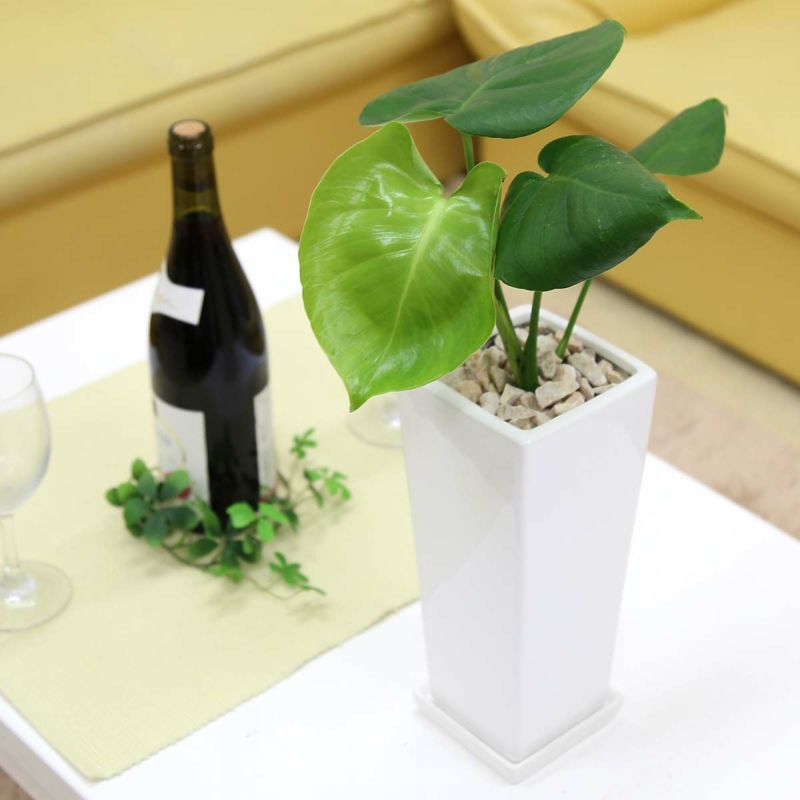 【送料無料】モンステラ 5号 ホワイトスクエア陶器鉢鉢 ストレート+ 陶器製の鉢皿付き