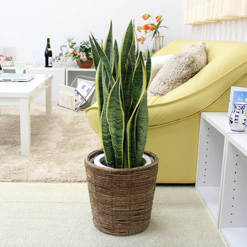 別名、トラノオとも言われていて、虎の尾に似ている綺麗な葉色の模様で飾った場所も華やかになり、育てやすく、飾りやすいサイズでおすすめの観葉植物です。バスケット鉢カバーとのセットですので、贈り物としても喜ばれます。インテリアと空気浄化も両方、楽しめます。