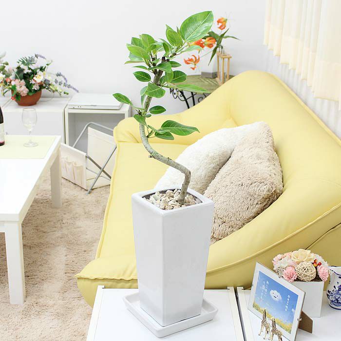 他の画像を見る 【送料無料】フィカス・ウンベラータ 7号 朴仕立て ホワイトスクエア陶器鉢 ストレート 土の表面:ウッドチップ 当店特別価格 ¥ 9,999 税込 在庫切れ 植物サイズ 設置後高さ:約80cm~95cm お気に入りに登録する