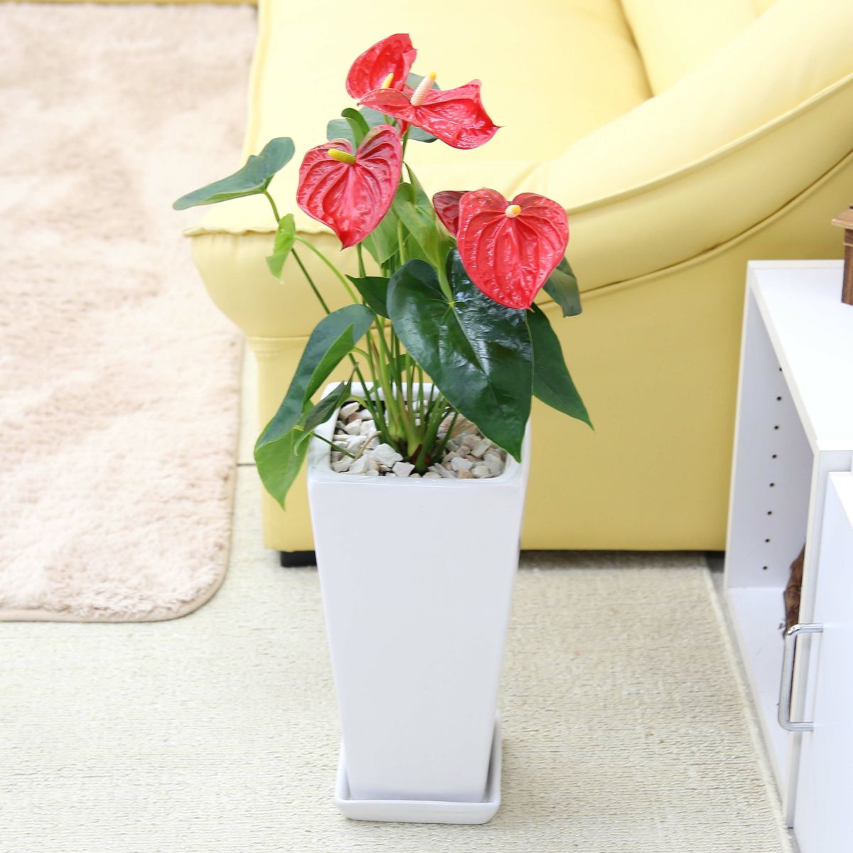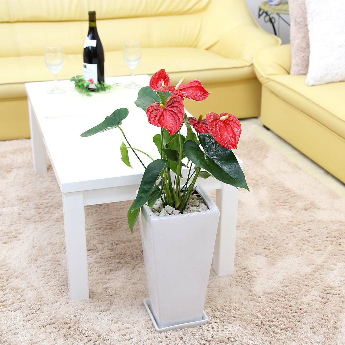 他の画像を見る 【送料無料】アンスリウム(アンスリューム)「レッド」 7号 ホワイト陶器鉢 ストレート 当店特別価格 ¥ 7,700 税込 在庫切れ 植物サイズ 設置後高さ:約80cm~1m お気に入りに登録する