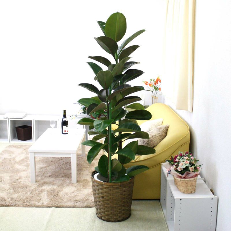 観葉植物|ゴムの木 10号+バスケット鉢カバー
