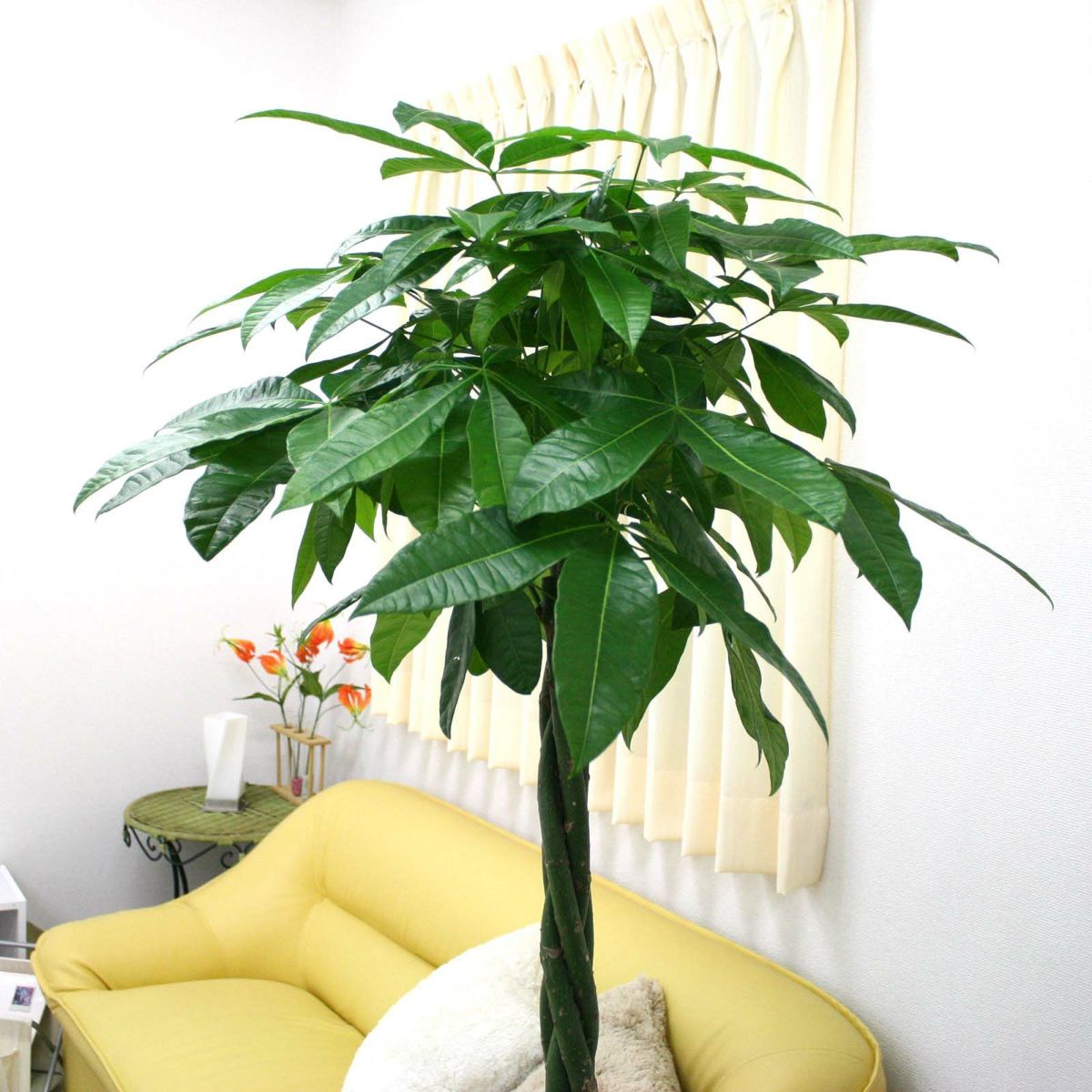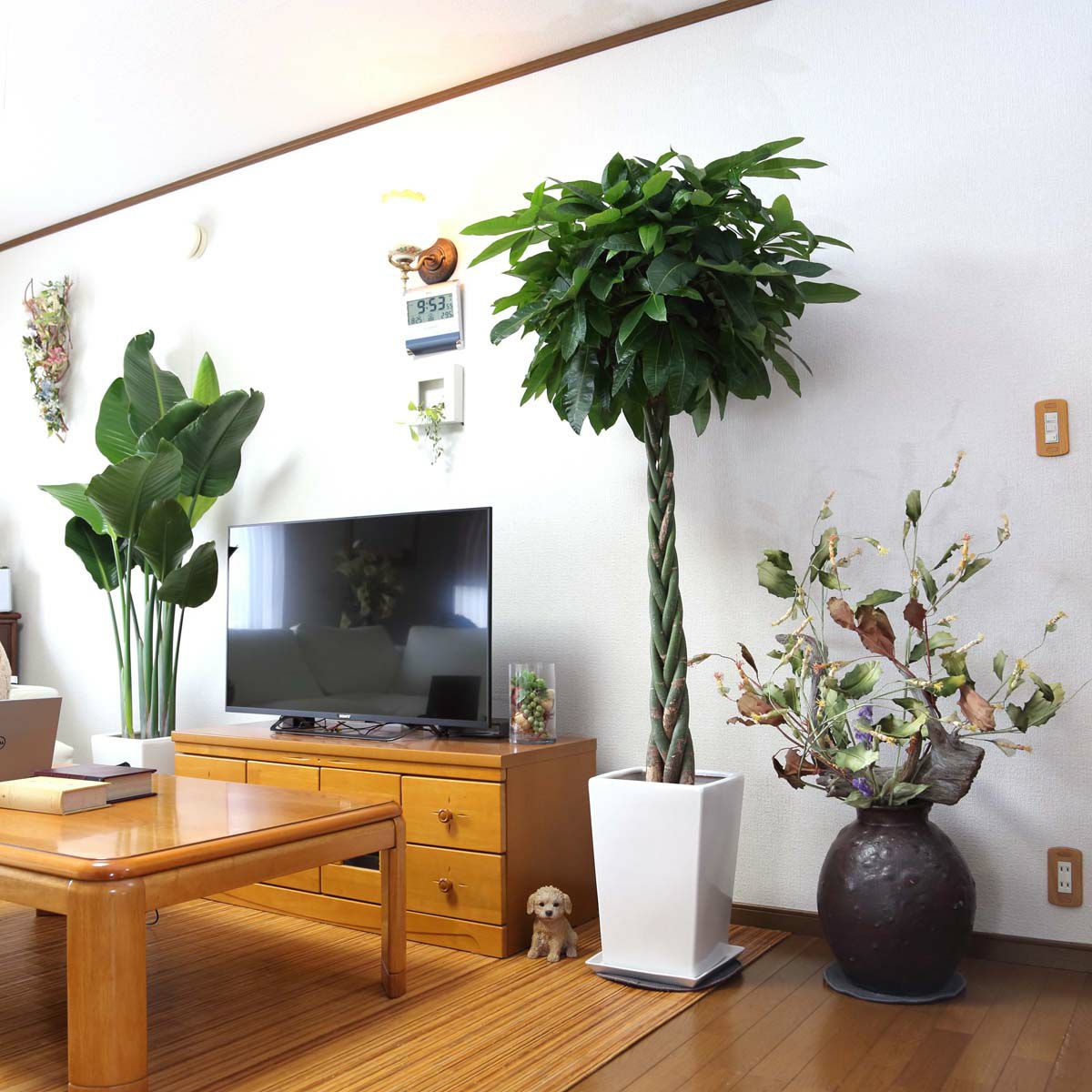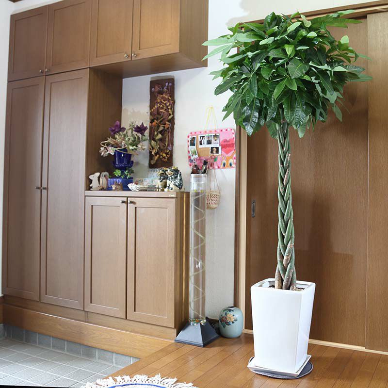 他の画像を見る 【送料無料】パキラ 編みタイプ 5号 陶器鉢 丸ロング+鉢皿付き 土の表面:ウッドチップ 当店特別価格 ¥ 4,500 税込 在庫切れ 植物 サイズ 設置後高さ: 約30~40cm お気に入りに登録する