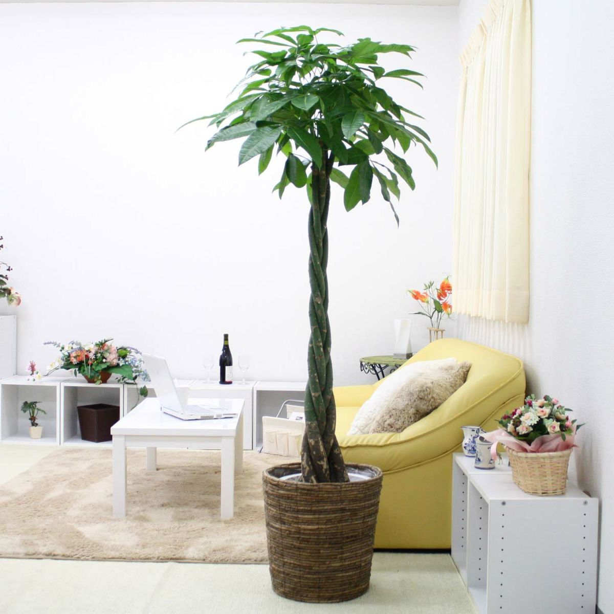 他の画像を見る 【送料無料】パキラ 10号 ホワイトバスケット鉢カバー 土の表面:ウッドチップ 当店特別価格 ¥ 37,950 税込 植物 サイズ 設置後高さ: 約1.5~1.8m お気に入りに登録する