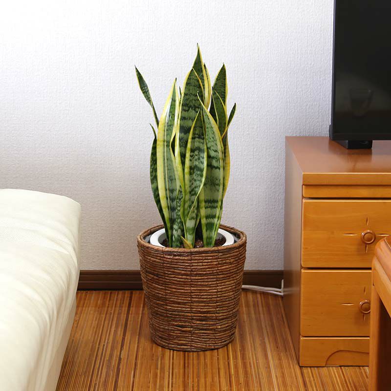 他の画像を見る 【送料無料】空気を浄化するといわれているサンスベリア 7号+ブラウンバスケット鉢カバー 土の表面:ウッドチップ 当店特別価格 ¥ 11,000 税込 植物サイズ 設置後高さ:約65~80cm お気に入りに登録する