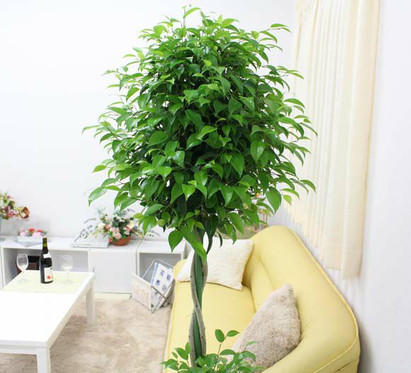 【送料無料】ベンジャミン トピアリー 10号 選べるスクエア陶器鉢 ストレート|幹に中央部分には、緑色の支柱が入っており、幹が支柱に絡むような形になっております。