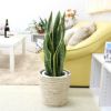 ナチュラル感が楽しめるバスケット鉢カバーセットでのお届けです。人気のサンスベリアを是非、お部屋やオフィスに飾ってくださいませ。