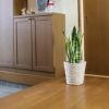 マイナスイオンを出す観葉植物としても人気で空気を綺麗にするということでTVでも人気になったサンスベリアなんです。サンスベリア(サンセベリア)は、多肉質で葉っぱに模様が入って美しいのも魅力的! 葉の模様も特徴的で、飾ると爽やかな雰囲気をお部屋やオフィスで楽しんでいただけます。目にもやさしそうなグリーンの葉っぱです。比較的、お手入れも簡単なので寒さなどに注意すると管理も容易です。インテリアとしてもとっても素敵で、しかも!一番、嬉しいのは水やりの頻度が他の観葉植物に比べて少なくて管理もやさしいのも特徴です。スマートな雰囲気と葉っぱの独特な模様もGood!是非、リビングルームやオフイスなどでお楽しみください。飾りやすいサイズですので、幅もとらず、新築祝いや開店祝いなどとしても人気があります。