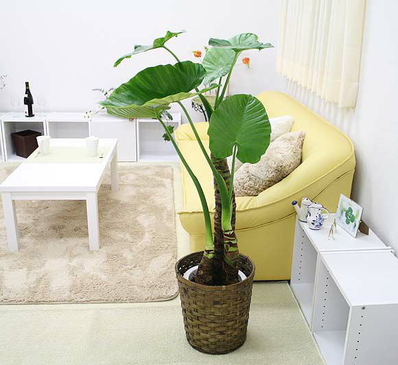 クワズイモは独特な個性的な樹形からインテリアにも良くマッチし人気のある観葉植物です。