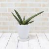 【送料無料】空気を浄化するといわれているサンスベリア・ホワイト陶器鉢 丸ロング【土の表面:竹炭タイプ】 当店特別価格 ¥ 3,975 税込 植物 サイズ 設置後高さ: 高さ 約35~50cm お気に入りに登録する