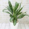 陶器調でおしゃれなプラスチック鉢植えタイプでのお届けです。葉色もやさしい緑色で模様も素敵!人気のアグラオネマ シルバークィーン。※写真はイメージ写真になります。在庫の中から元気なものをお選びし発送させていただいております。