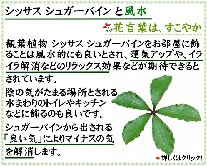 他の画像を見る 【送料無料】シッサス シュガーバイン 5号 スクエアプラスチック鉢+鉢皿付き 当店特別価格 ¥ 3,498 税込 在庫切れ 植物 サイズ 設置後高さ: 約20~30cm お気に入りに登録する