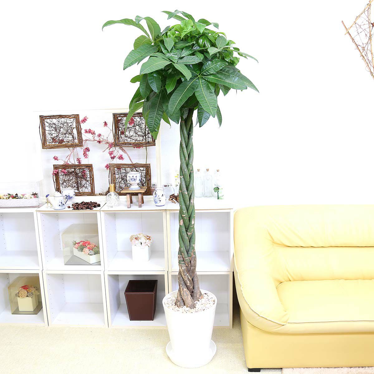 他の画像を見る 【送料無料】パキラ 10号 ホワイトバスケット鉢カバー 土の表面:ウッドチップ 当店特別価格 ¥ 37,950 税込 植物 サイズ 設置後高さ: 約1.5~1.8m お気に入りに登録する