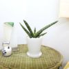 【送料無料】空気を浄化するといわれているサンスベリア・ホワイト陶器鉢 丸ロング【土の表面:竹炭タイプ】 当店特別価格 ¥ 3,975 税込 植物 サイズ 設置後高さ: 高さ 約35~50cm お気に入りに登録する