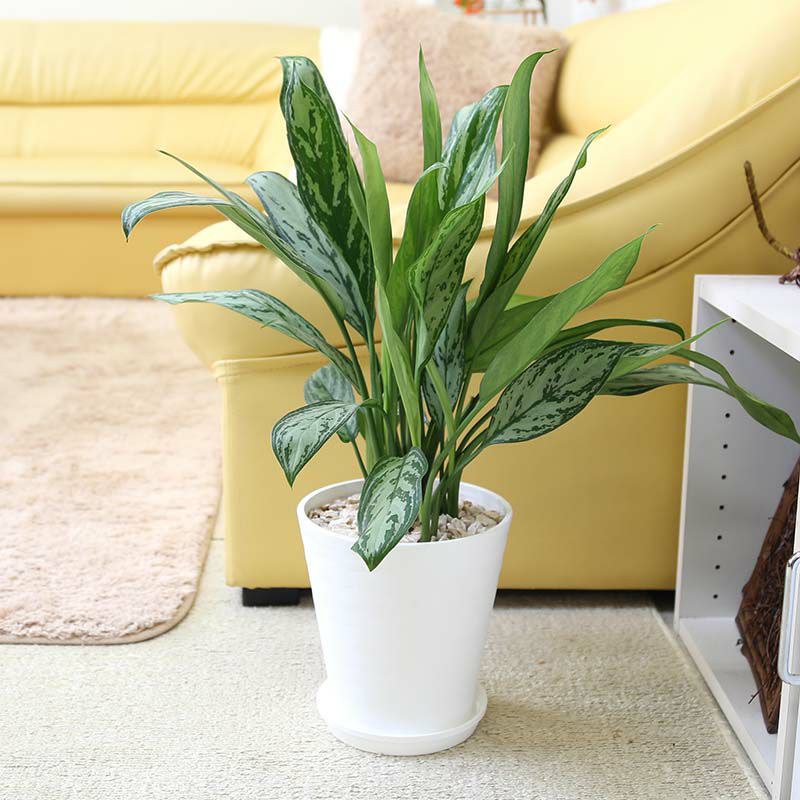 陶器調でおしゃれなプラスチック鉢植えタイプでのお届けです。葉色もやさしい緑色で模様も素敵!人気のアグラオネマ シルバークィーン。※写真はイメージ写真になります。在庫の中から元気なものをお選びし発送させていただいております。