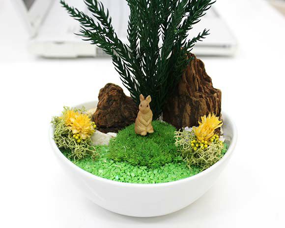 珍しい!プリザーブドグリーン(グリーン色)&うさぎフィギア付き