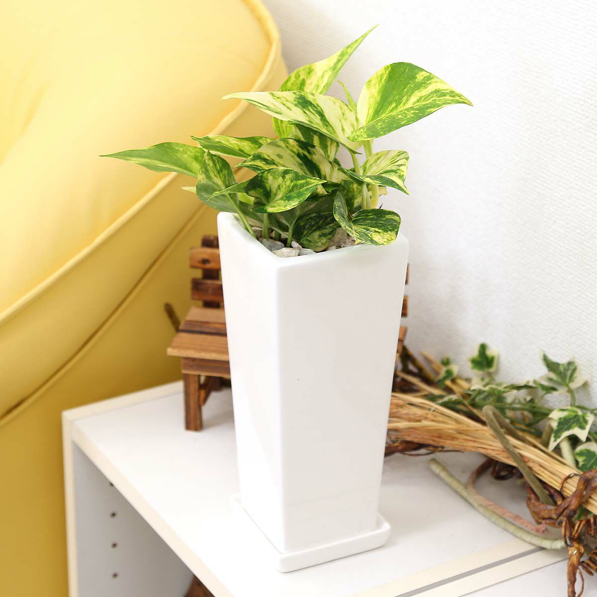 他の画像を見る 【送料無料】空気も浄化するといわれているアイビー 5号 ホワイトスクエア陶器鉢 ストレート 当店特別価格 ¥ 3,465 税込 植物 サイズ 設置後高さ: 約25~35cm お気に入りに登録する