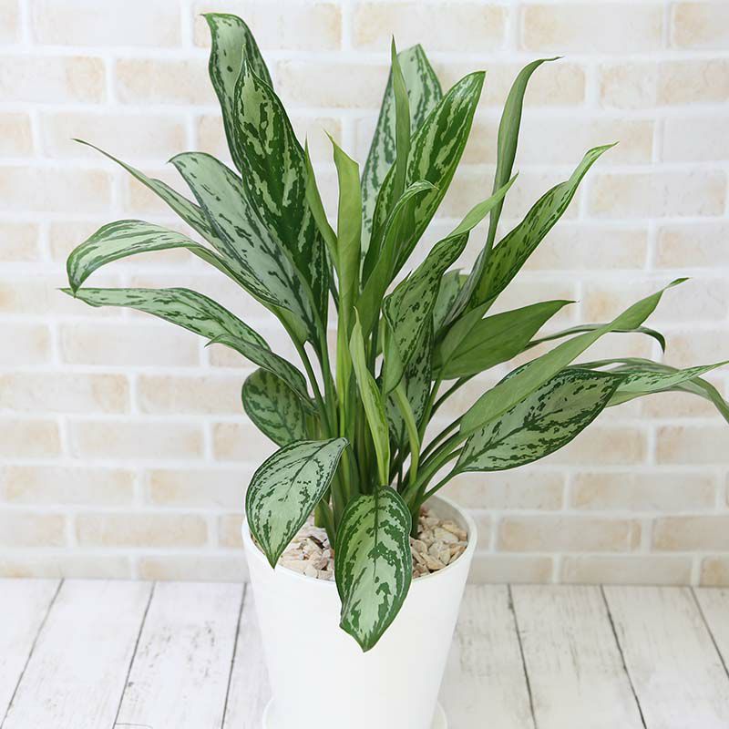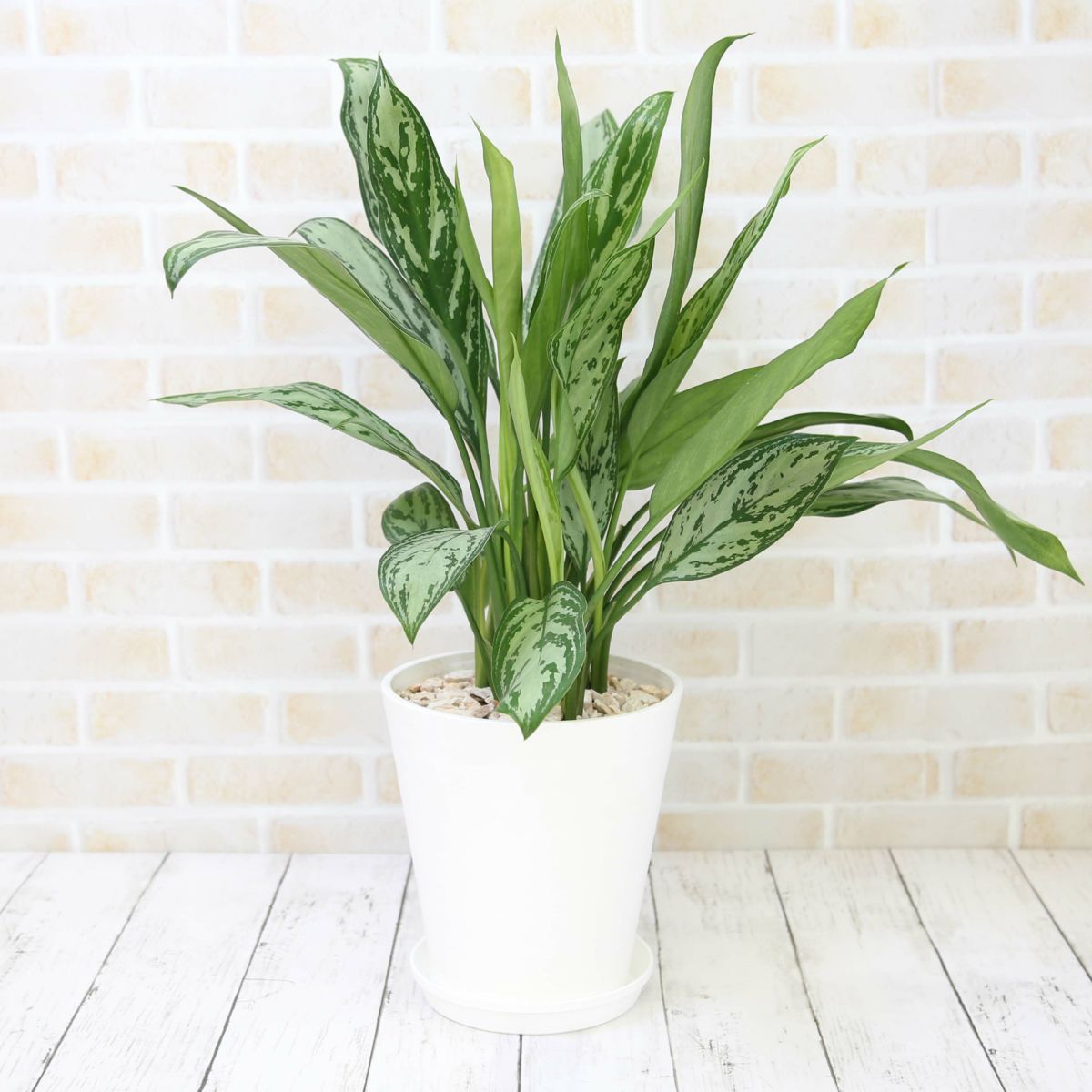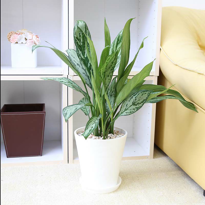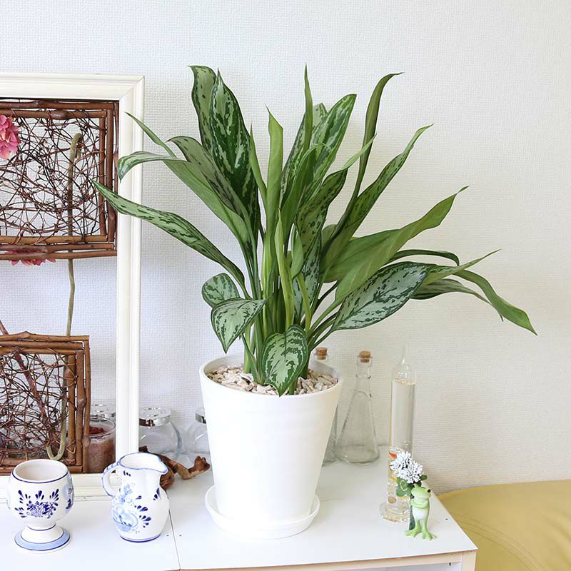 【送料無料】空気を綺麗に♪アグラオネマ シルバークィーン 7号 ホワイト陶器鉢 Zタイプ