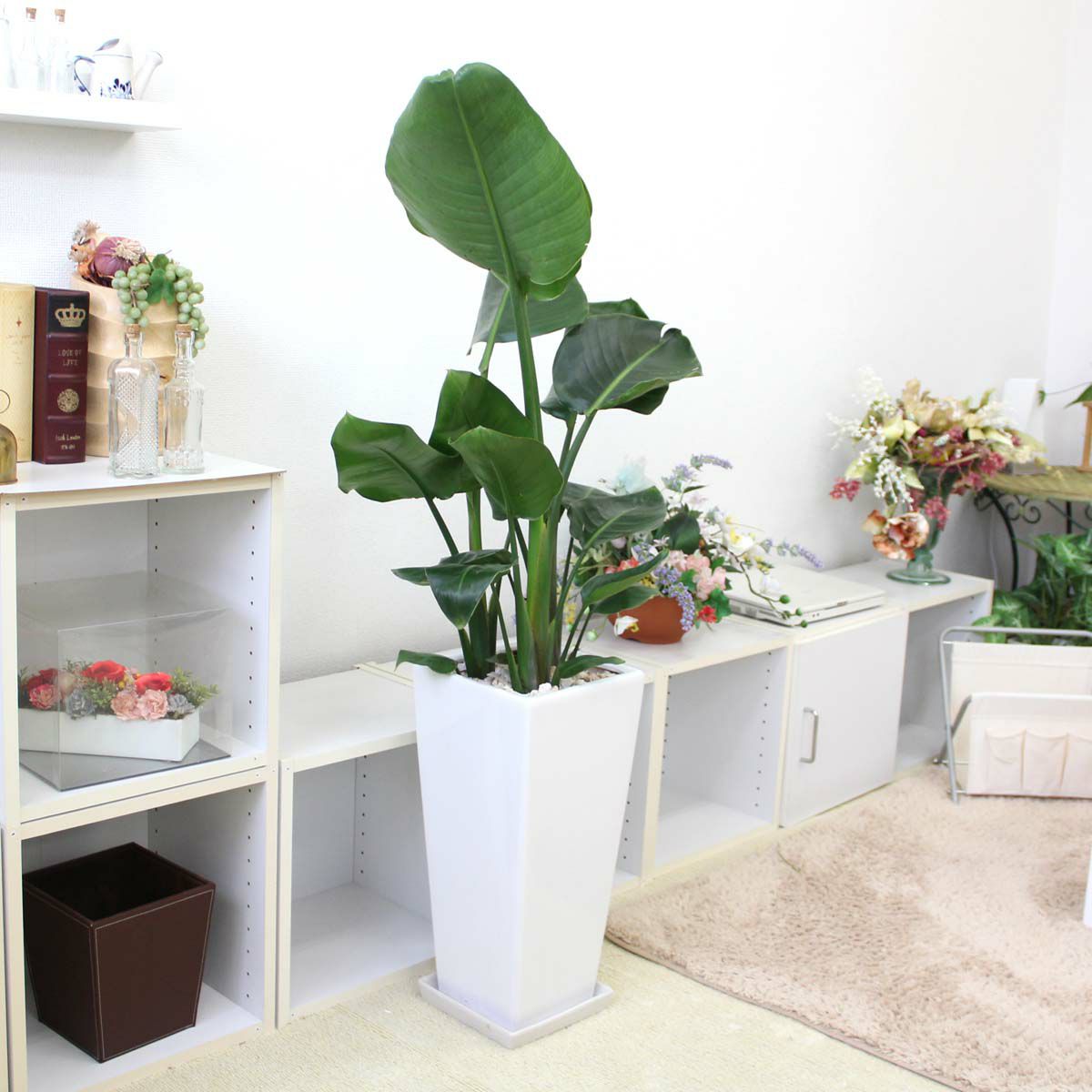 他の画像を見る 【送料無料】オーガスタ 7号 ホワイトスクエアプラスチック鉢+お皿付き 土の表面:ウッドチップ 当店特別価格 ¥ 9,500 税込 植物 サイズ 設置後高さ: 約60~80cm お気に入りに登録する