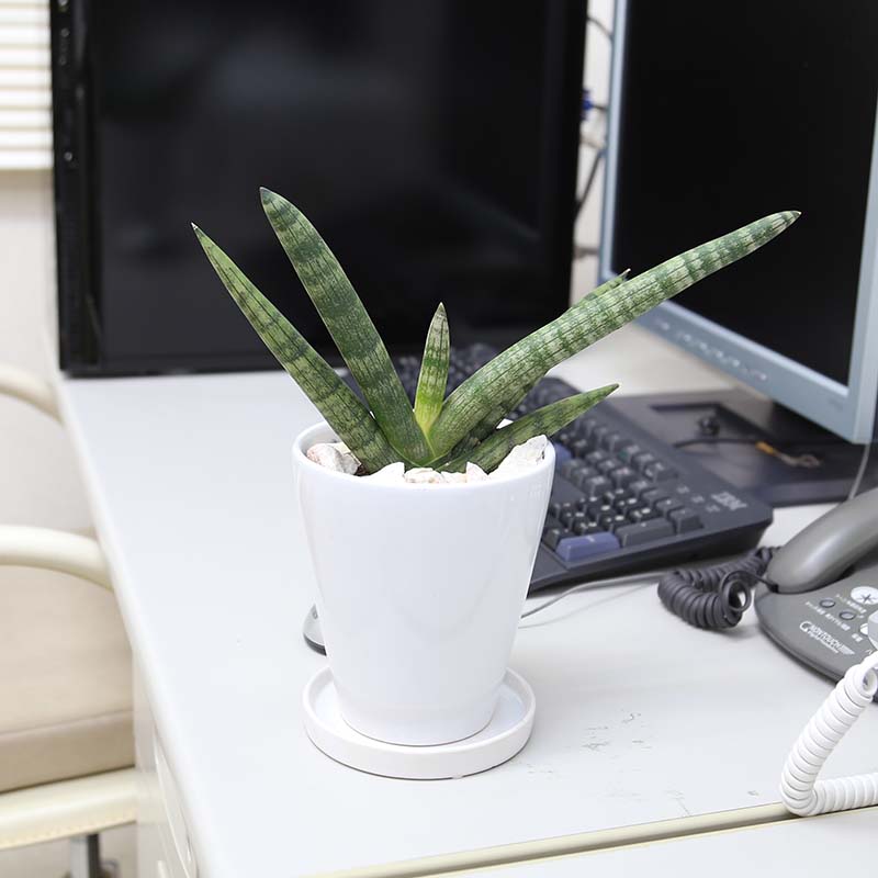 あまり店頭にも並ばない珍しい品種のサンスベリア ボンセレンシス。珍しい品種ですが、とっても育てやすく、飾りやすいサイズでおすすめの観葉植物です。インテリアと空気浄化も両方、楽しめます。 1鉢飾るだけで、こんなにお部屋やオフィスの雰囲気がかわるのかと思っていただけると思います。