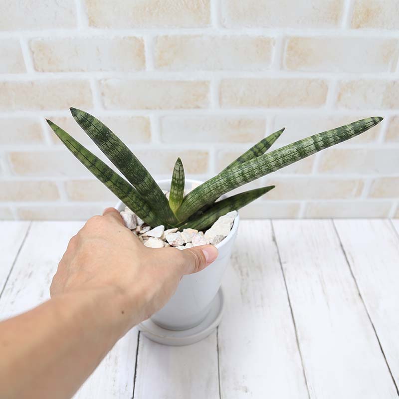 場所をとらずオブジェとしても! 珍しい!サンスベリア ボンセレンシス 5号 ホワイト陶器鉢 土の表面:化粧石