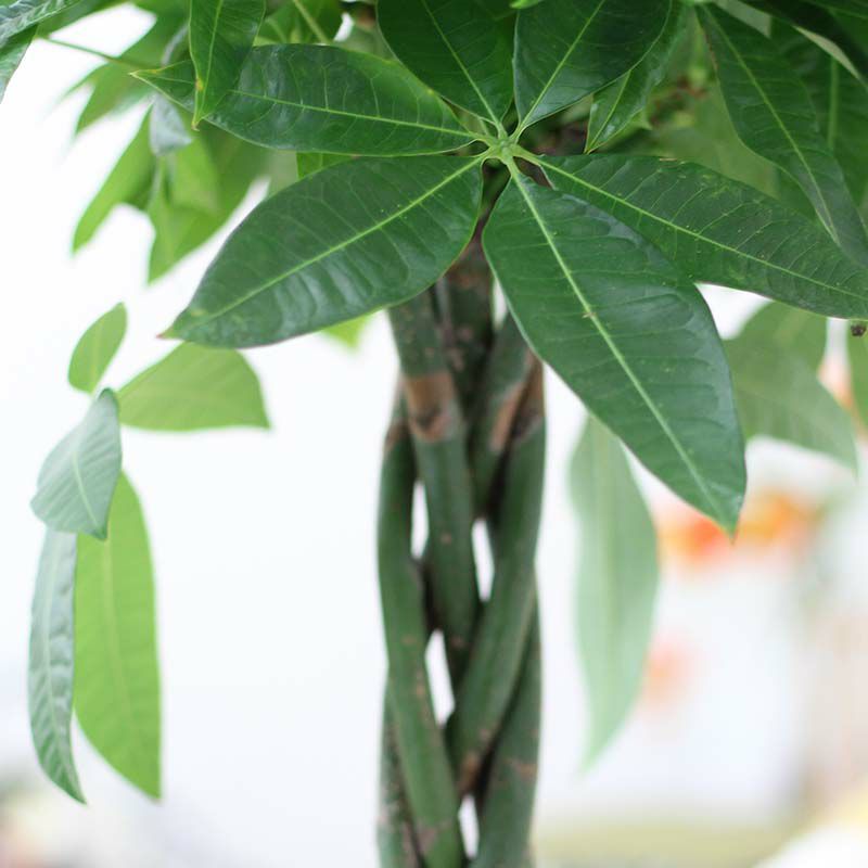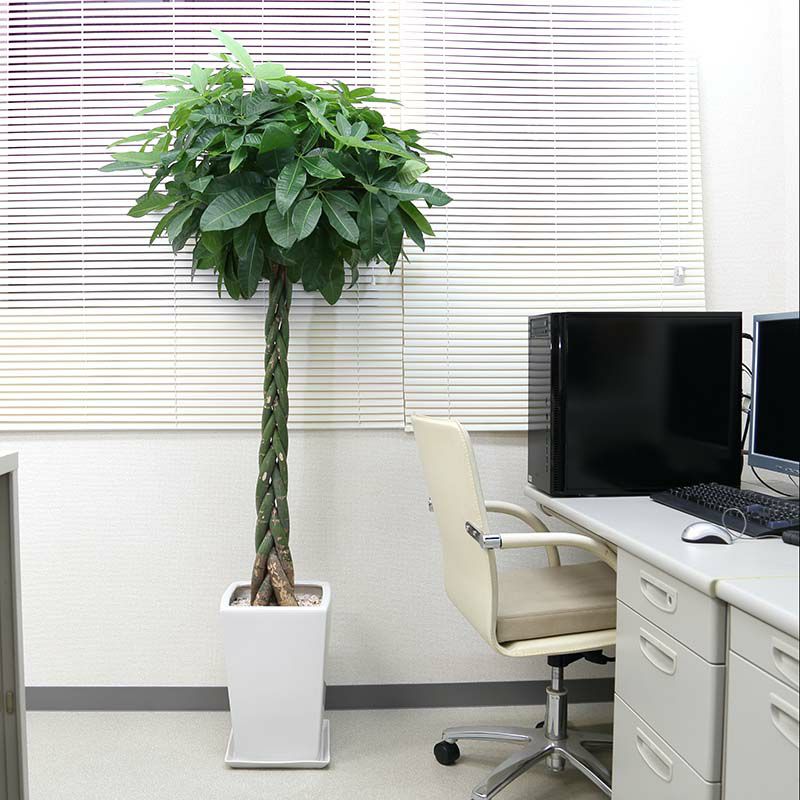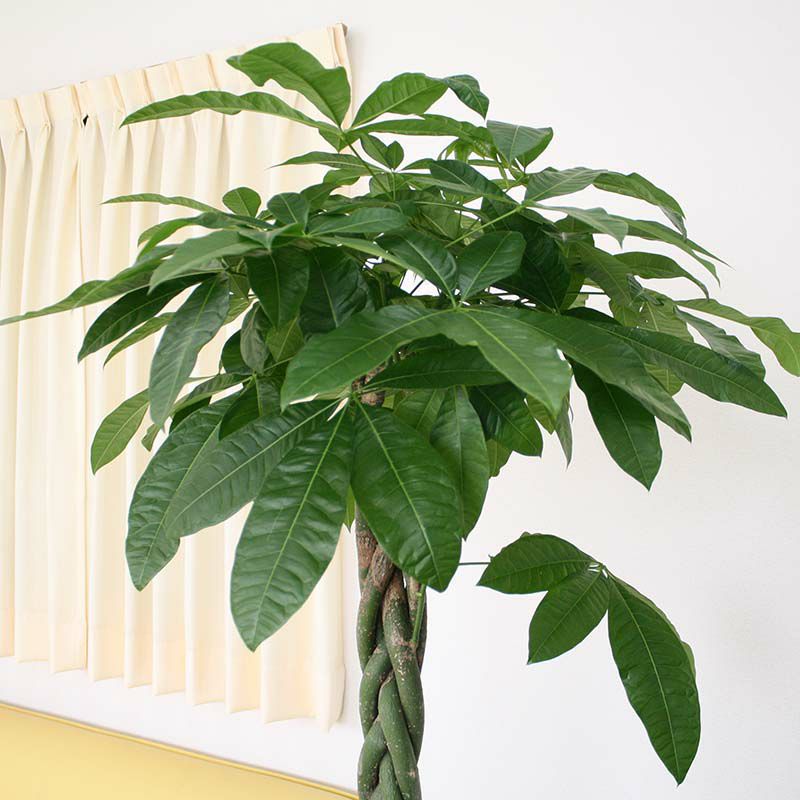 【送料無料】人気のパキラ 10号 選べるスクエア陶器鉢 ストレート 土の表面:ウッドチップ