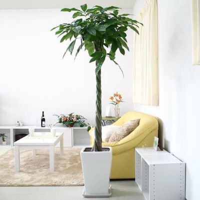 【送料無料】人気のパキラ 10号 選べるスクエア陶器鉢 ストレート 土の表面:ウッドチップのレビュー